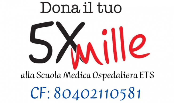 A tutti coloro che hanno interesse a sostenere la didattica medica, di cui professionisti e utenti sentono sempre più la necessità, chiediamo pertanto di devolvere alla Scuola Medica Ospedaliera-ETS il 5 per mille, firmando nell’apposito spazio “Sostegno degli Enti del Terzo Settore” iscritti nel RUNTS di cui all’art. 46, C1, del D.lgs 3 luglio 2017, N.117 inserendo il seguente